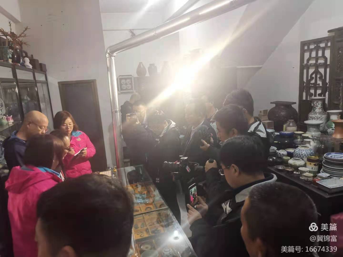 介休市飲茶歷史悠久,張?zhí)m鎮(zhèn)古玩市場(chǎng)的商家在介休民間收購(gòu)了大量的古茶具、茶文化遺存,到古玩市場(chǎng)考察,令采訪團(tuán)記者大開眼界!